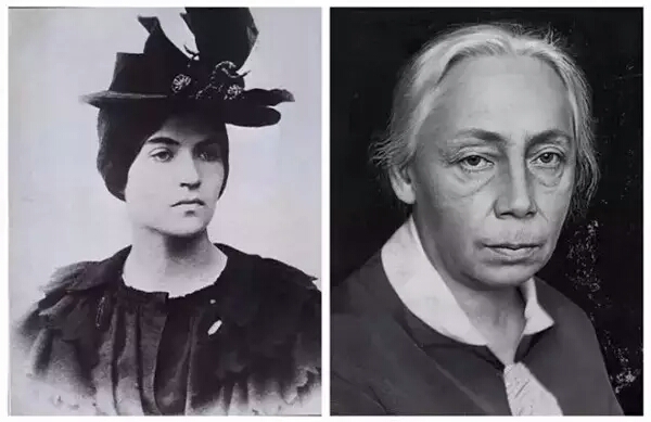 蘇珊娜·瓦拉東出生于法國貝西納,逝于巴黎。女畫家蘇珊娜青年時代貌美、狂熱和放蕩,曾在蒙馬特的舞場畫室紅極一時。開始她作畫家們的模特兒,爾后自己作畫,她作畫就像發(fā)狂一樣,畫出的素描不是為了被配上漂亮的鏡框而是為抓住動蕩、緊張生活的一刻。 她作畫不搞任何創(chuàng)造,只是好奇地和精確地努力將人體的形放入她那硬直以至鋒芒畢露、然而又總是巧妙和諧的筆法之中,手法盡管生硬卻驚人的明快有力。她是一位罕見的畫家,具有自己獨特的畫風——一種男性的,以意志支配一切感覺的畫風。 蘇珊娜不承認自己有任何老師,事實上她的確與以她為模特兒的所有大畫家都無共同之處。她只同意說自己受過高更技巧的啟發(fā),她曾在1889年美展上研究過他的裝飾風格。 左:蘇珊娜·瓦拉東(1865-1938);右:凱綏·珂勒惠支(1867-1945) 珂勒惠支倒是和她同代,但不畫油畫,而是,力氣很大,晚年弄起雕塑來,她兒子死于一戰(zhàn),她做了系列大雕塑,深沉剛正,分量也很重。所 以上世紀九十年代她被發(fā)掘重視,恐怕和女權意識的成熟壯大有關系。